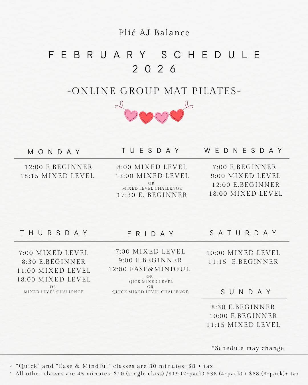 *All Pilates classes are provided in English unless otherwise stated.